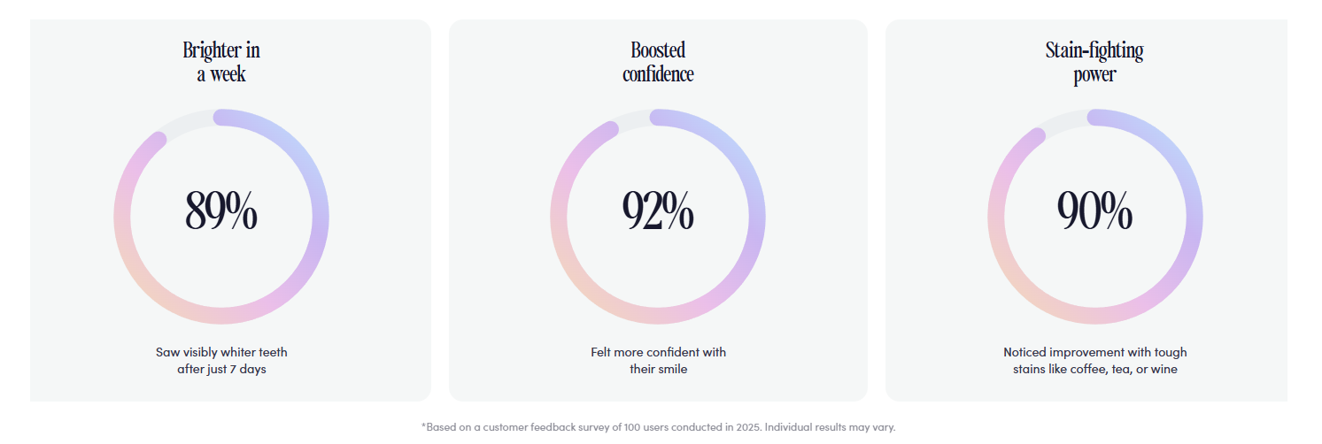 With consistent use, users can whiten teeth up to 8 shades in 14 days.